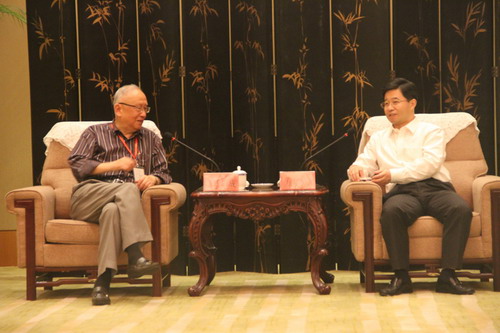 图为常州市副市长方国强会见台北市生物产业协会理事长田蔚城。