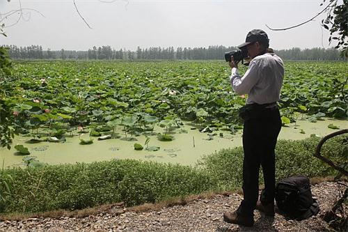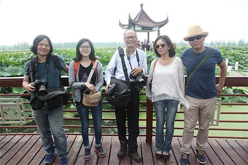 吴景腾是拍摄荷花的资深摄影师,来淮期间,恰逢第十六届中国金湖荷花节开幕,于是欣然应邀参加荷花节的子活动——“荷香影韵摄影大赛”。在开幕式上,吴景腾作为台湾嘉宾代表致辞时说:“我在台湾拍荷花已有三十几年,也曾去世界各地拍过荷花,对有着‘中国荷花之都’美誉的金湖一直心有向往,此次有机会参加‘荷香影韵摄影大赛’,感到十分荣幸,让我们与全国各地的摄影师朋友以荷为媒、以荷会友,共同用我们的镜头展示荷花之韵、金湖之美,让世界各地更多的人知道荷都金湖。”在随后的摄影活动中,吴景腾一行兵分两路,在荷花荡景区内的百荷观赏园、荷花仙子广场、赏荷桥等地进行了精心拍摄。七月的荷花荡,正值是荷花开放盛期,“接天莲叶无穷碧,映日荷花别样红”,在拍摄过程中,吴景腾一行对荷花荡里荷花品种之多、荷花种植面积之广不住惊叹。吴景腾表示,自己在世界各地拍摄了那么多年的荷花,自认为是荷花领域的半个专家,但仍然有不少荷花品种是首次见到,自己一定会使出“浑身解数”,记录下金湖的荷花之美、荷花之韵。