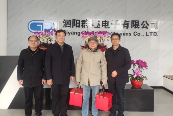 江苏省台办政府网站1月30日讯 新春佳节来临之际,淮阴区委常委、统战部部长蔡昀携统战部副部长、台办主任李宏、高新区经济发展局负责同志等一行赴泗阳拜访台湾强茂电子董事、泗阳群鑫电子有限公司董事长钟运辉先生。