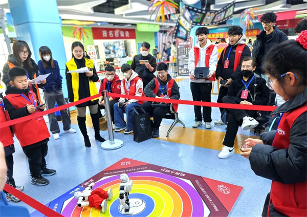 活动现场,科技氛围与青春活力交织碰撞。机器人相扑赛场被围得水泄不通,随着裁判一声令下,由青少年亲手制作的机器人瞬间启动,出拳、蹬腿、避让、猛顶……在选手的操控下,机器人在赛场中央展开激烈“角力”,引得观众阵阵欢呼。
