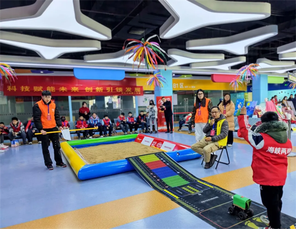 机器人跳远赛场则充满了悬念与惊喜。选手们围在赛道旁,仔细调试装备,期待自己的“作品”能突破极限。“1米2!”当赛车加速起跳,稳稳落在标记线后,台湾参赛选手李同学满脸自豪地说,“为了这次比赛,我调试了一个月的弹射系统,总算没白忙。”