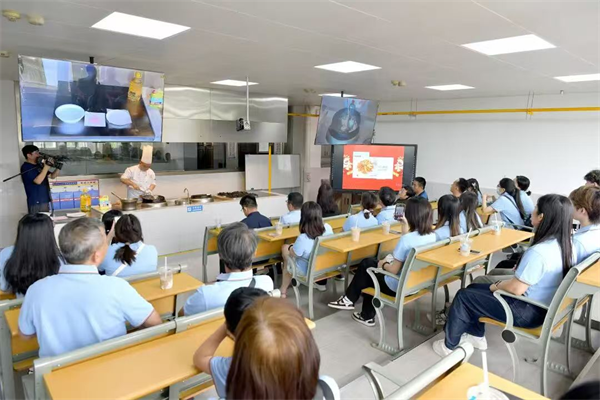 活动从热闹的烹饪展示拉开序幕。在烹饪旅游学院一楼大厅,西点展台的精致蛋糕、多层甜点引学生驻足;绝技绝活社团现场演绎“菊花豆腐”与“龙须抻面”,细如发丝的面条、形似菊花的豆腐,让台湾同胞连连惊叹“不可思议”,纷纷凑近观摩学习。