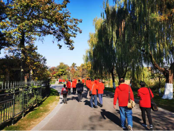 11月11日,省委台办组织的离退休干部“健步走大联动”活动,在雄伟的玄武门前拉开帷幕,身着统一红色运动上衣的老同志,个个精神抖擞、容光焕发,在湖光山色间形成一道亮丽的风景。