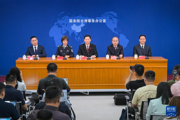 6月21日,国务院台办在北京举行专题发布会,最高人民法院审判委员会委员、刑事审判第二庭庭长马岩,最高人民检察院重大犯罪检察厅副厅长张庆彬,公安部法制局副局长、一级巡视员孙萍,司法部律师工作局局长田昕,解读《关于依法惩治“台独”顽固分子分裂国家、煽动分裂国家犯罪的意见》的制定背景、主要内容和重点条文。新华社记者 陈晔华 摄