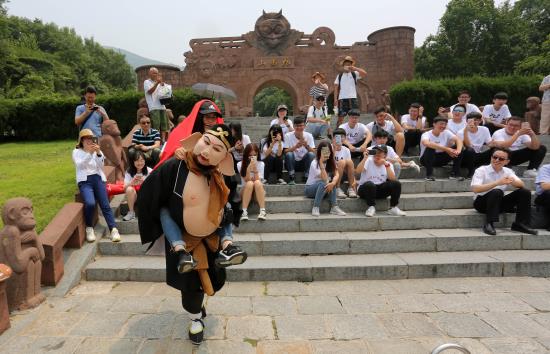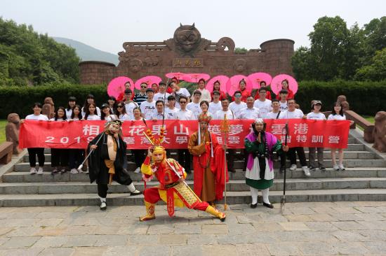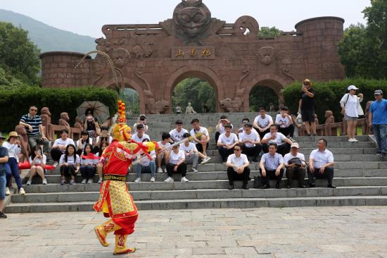 在对台交流基地——花果山景区,台湾大学生一行游览了花果山景区的主要景点,观看了精彩的西游文化表演,唐僧师徒四人为同学们表演了西游记中的经典片段,与同学们积极互动,猪八戒与台湾学生共同表演的猪八戒背媳妇,火爆全场。最后,台湾大学生、唐僧师徒四人、市台办和云台山景区管委会领导登台一起跳起来广场舞,为活动增添了气氛,拉近了距离,让台湾同学了解不一样西游文化,感受博大精深、历史悠久的中华文化。