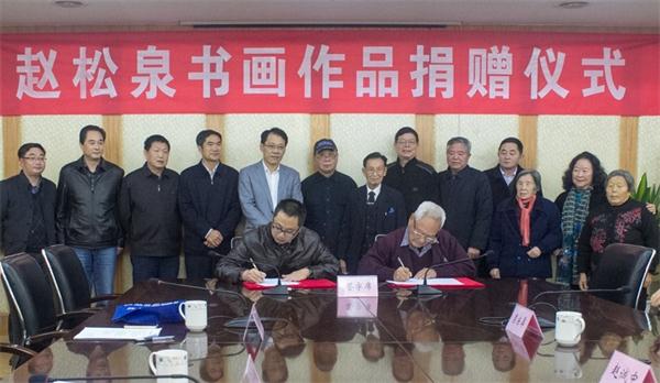 捐赠仪式上,赵松泉长子赵恭一与区博物馆签订了捐赠备忘录,区委书记、区长谢元为赵氏后人代表颁发了《捐赠证书》。(溧水新闻网)