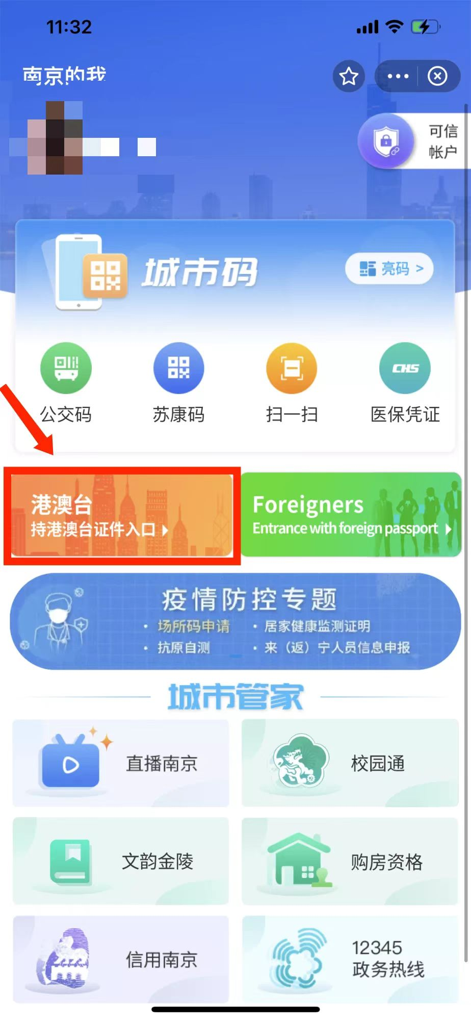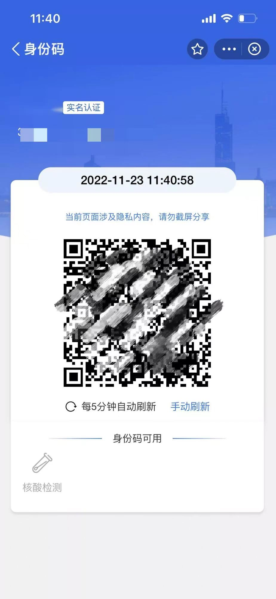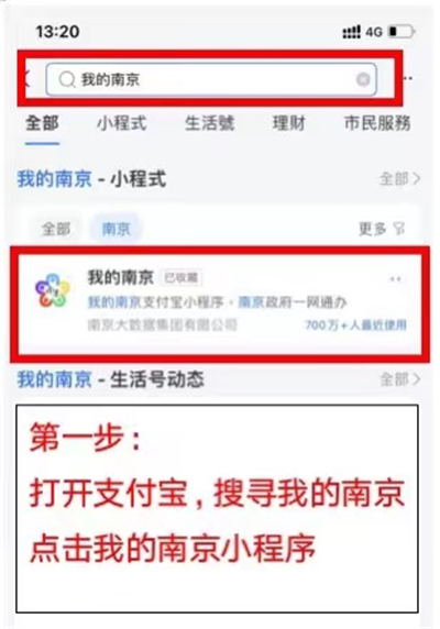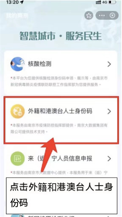 当前,在宁台胞可通过支付宝搜索“南京的我”或“我的南京”小程序,依照下图操作生成核酸检测“身份码”。具体操作如下: