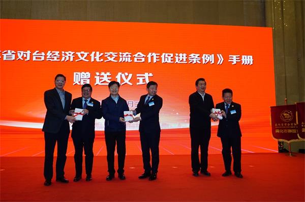 省、市领导向泰州市台协会赠送《江苏省对台经济文化交流合作条例》宣传手册。省委台办副主任孙继兵在致辞中指出,江苏是大陆台商投资最密集、两岸经贸文化交流最活跃、合作成果最丰硕的地区之一。2022年,省台办始终围绕贯彻落实中央对台工作决策部署和服务我省高质量发展两个大局,全面落实“疫情要防住、经济要稳住、发展要安全”重大要求,锐意进取、砥砺前行,江苏对台经济合作实现平稳健康发展。孙继兵肯定,泰州市准确把握对台工作的新形势新要求,承压前行,克难奋进,高质量承办“2022年长三角两岸企业家溱湖论坛”等活动,为苏台经济文化交流合作贡献力量。