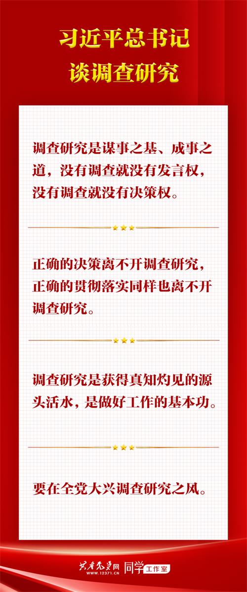 调查研究要注重实效,使调研的过程成为加深对党的创新理论领悟的过程,成为保持同人民群众血肉联系的过程,成为推动事业发展的过程。要防止为调研而调研,防止搞“出发一车子、开会一屋子、发言念稿子”式的调研,防止扎堆调研、“作秀式”调研。