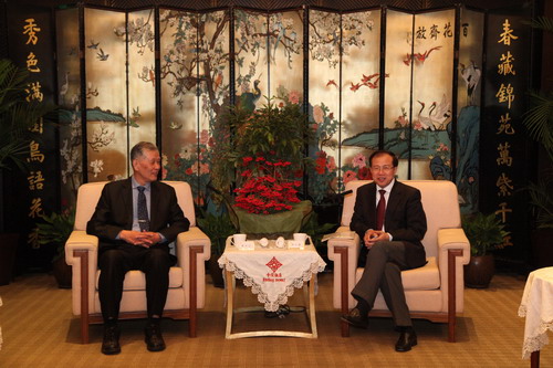江苏省人民政府副省长傅自应(右)会见台湾医务管理学会暨台湾社区医院协会理事长谢武吉