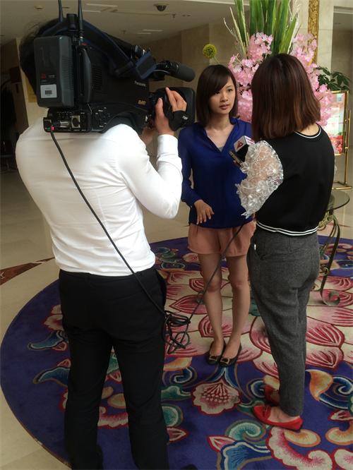 图为台湾东森电视台记者陈旻坊畅谈泰州印象。