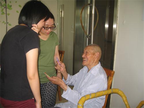 两岸大学生在市社会福利中心有关负责人的陪同下参观了福利中心图书馆、棋牌室、书画室、放映厅、手工坊、门球场、舞蹈房、健身中心、百岁养生馆以及儿童和老人房间设施。大学生们分成两组分别与儿童福利院的儿童和紫葳楼的老人们同时开展活动,有的大学生在给儿童讲故事、唱歌,有的推着坐在轮椅上的老人院中聊天、散心,有的在专心倾听老人们介绍扬州这座城的过去的历史和今天的发展,有的在耐心和老人们探讨英语学习中的问题,有的在热心接受老人们咨询台湾的大学生活……中途,两岸大学生还集体表演了文化娱乐节目,2个小时的活动时间很快过去了,老人们言犹未尽,同学们依依不舍。在亲眼目睹到扬州福利中心的生活环境和娱乐康复条件后,台湾大学生们纷纷感叹:生活在公办慈善机构的老人和孩子们真幸福!