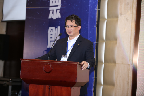 图为台湾上市柜公司协会创办人荣誉副理事长施明豪在论坛上作主题演讲。
