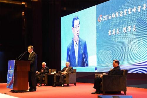 峰会台湾方面理事长萧万长在开幕式上发表主旨演讲。 当日,2016两岸企业家峰会年会在金门开幕。 新华社记者朱祥摄