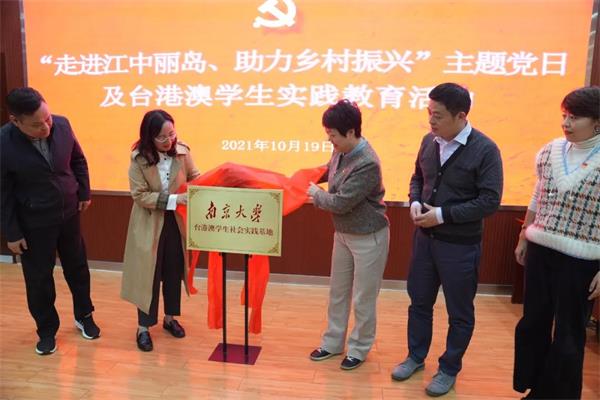 江苏省台办政府网站10月28日讯 日前,南京大学台港澳学生社会实践基地揭牌仪式在栖霞区八卦洲街道陌上花渡园区举行。南京大学台港澳事务办公室、八卦洲街道相关负责同志,南京大学台港澳学生代表等30余人参加活动。