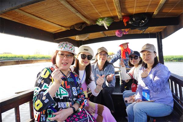 8日下午,参加活动的台湾嘉宾观摩了泰州特色文旅活动——千垛菜花节。一行人徜徉于美丽的油菜花海、泛舟于纵横的乡间水道,了解着关于兴化垛田的由来和水乡的特色民俗,不禁赞叹“泰州太美、顺风顺水!”,不住地按下快门,记录下美好的画面。