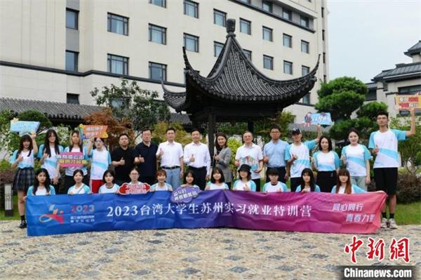 中新网苏州7月20日电 (记者 钟升)“你们在台湾要修多少学分啊?”“大陆大学的课业紧不紧?”“报考大陆的哪些高校比较好?推荐一下。”充满青春活力的大陆口音与台湾口音交织在一起,大家仿佛有聊不完的话题。2023台湾大学生苏州实习就业特训营20日在江苏苏州启幕,十余名台湾青年将在大陆开启为期一个月的多彩暑假生活。