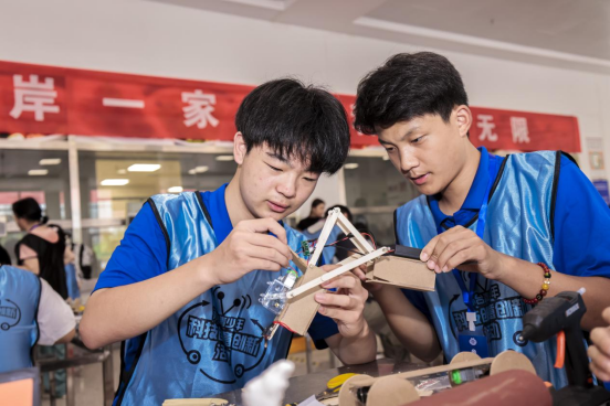 机器人比赛是每届活动的重头戏,该项目需要参赛选手具备强大的动手制作能力和良好的团队配合能力。比赛过程中选手们充分展示出各自实力,你锯木板我拧螺丝,你检查齿轮我负责钻孔……经过分工协作,各队制作出造型各异的机器人。“我们已经是第二次参加这个活动了,大家都很有实力,紧张的同时收获也很多。”泗阳县北京路小学六年级学生侯语欣告诉记者,参加此次比赛,不仅锻炼了动手和动脑能力,还增强了团队协作意识。