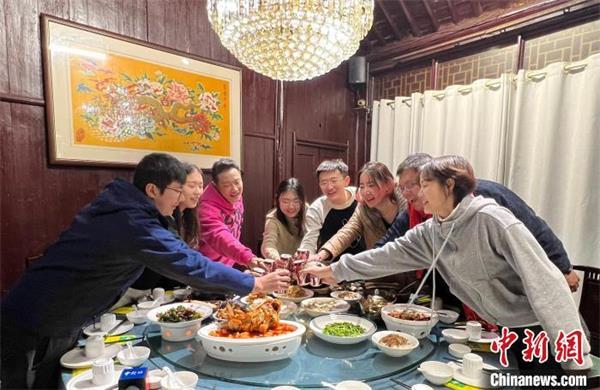 两岸青年南京同做同享团圆饭“拼盘”,举杯道祝福,龙年贺新春。 中新网记者 朱晓颖 摄
