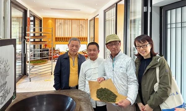 在茶文化博物馆,周韵一行与炒茶大师共品碧螺春茶,追溯茶文化本源,交流炒茶技艺。随后,苏州井龙玉台茶商贸有限公司台湾制茶技师赵立廉与东山炒茶技师叶仁玖现场共炒一锅碧螺春茶,从理论到实践深度交流切磋。