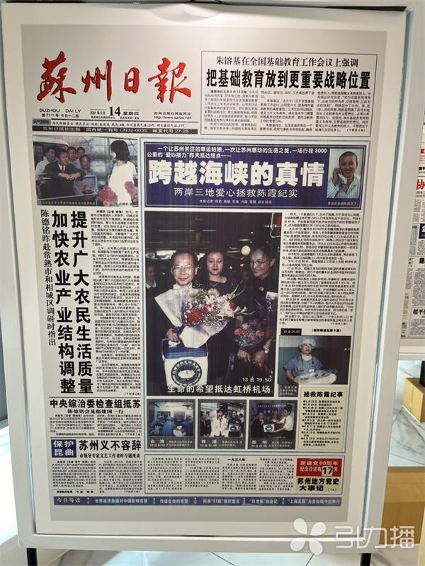 这是2001年6月14日《苏州日报》头版,占据大部分版面的是《跨越海峡的真情》——一篇关于大陆首例成功接受台湾同胞骨髓移植的白血病患者陈霞的报道。“这个新闻事件我印象很深,当时台湾媒体也有很多报道。”王茂臻说,两岸人缘相亲、文脉相连、经济相融,有着深厚的历史渊源和紧密的交流合作,23年前令无数人感动的爱心“捐髓”,正是两岸“血浓于水”的最佳注解。