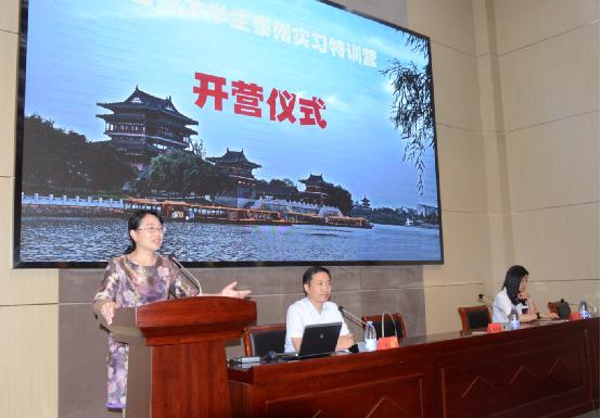 王晓梅在开营仪式上致辞,她向两岸50名青年大学生的到来表示热烈欢迎,并对本次特训营的活动安排进行简要介绍,最后预祝所有同学们能够在泰州度过一个精彩愉快的实习期,真正认识泰州,了解泰州,圆梦泰州。