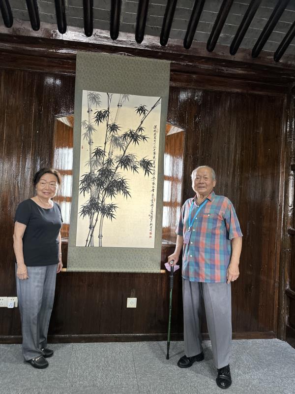 来自台湾江苏同乡会书画交流团的87岁台湾师范大学美术系郑翼翔教授,曾在2019年向海陵区捐赠了42幅个人作品。此次,他来到海陵区的吴同甲纪念馆,看看4年前捐赠的书画,听着吴同甲的生平,激动的说:“我的画可以挂在这样一个了不起的乡贤馆里头,我是真的高兴!”“虽然走遍世界,但是我深深喜欢泰州。我把自己的作品和心爱的东西长久捐献在这里,放在自己喜欢的地方。”