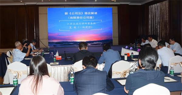 江苏省台办政府网站5月31日讯 为帮助在泰台企准确了解新《中华人民共和国公司法》,5月29日,泰州市台办联合市台协邀请泰州台胞法律服务团成员、江苏众成信律师事务所主任夏俊为在泰台企台商开展新《公司法》宣传解读,50余位台商台干参加活动。