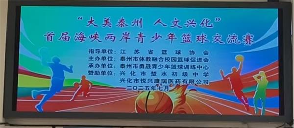 本次赛事由江苏省篮球协会指导,泰州市体教融合校园篮球促进会主办,泰州市勇晟青少年篮球训练中心承办,兴化市楚水初级中学、兴化市悦兴康瑞医药有限公司等赞助。两岸青少年在充满激情的交流赛中,共同享受篮球运动带来的青春活力。