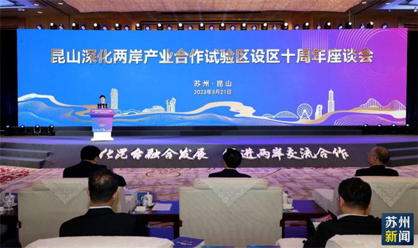3月21日,昆山深化两岸产业合作试验区设区十周年座谈会举行。(图片来源:苏州新闻公众号)