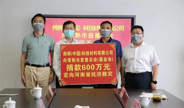江苏省台办政府网站8月4日讯 7月30日,常熟市台资企业烨辉科技向常熟市慈善总会捐款600万元,定向河南省抗洪救灾。