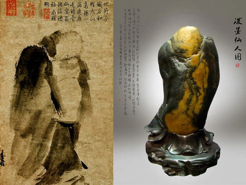 图为常州“泼墨仙人”石(右)和台北故宫“泼墨仙人”画(左)