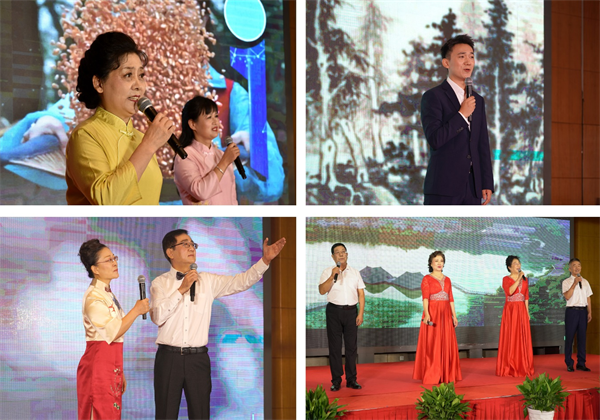 徐州市朗诵艺术协会的会员们分别表演了余光中、舒兰和流沙河等著名诗人系列脍炙人口的经典佳作《春天,遂想起》《就是那一只蟋蟀》《乡愁》与《乡色酒》,并饱含深情地朗诵了气势磅礴的《赞美你,走在新时代大道上的美丽徐州》,最后在现场嘉宾全体起立共同合唱《相亲相爱的一家人》。