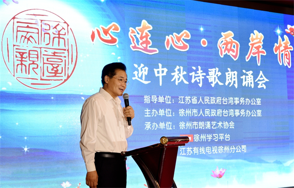 9月8日上午,徐州市台办举办“心连心·两岸情”诗歌朗诵会,现场40多位台胞台属胞欢聚一堂,共迎中秋。徐州市台办主任朱晓清,徐州市台湾同胞投资企业协会副会长任聿旬、徐州市台属联谊会常务副会长耿兴孝出席活动,朗诵会由任聿旬和徐州市朗诵艺术协会李小然主持。