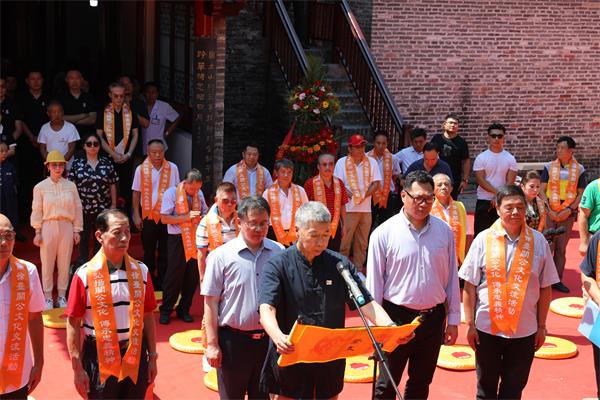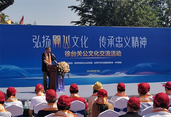 江苏省台办政府网站8月11日讯 为携手弘扬关公文化,共同传承忠义精神,由徐州市邳州土山关帝庙、台湾中华文化暨旅游协会、中华微视共同主办的徐台关公文化交流活动于8月10日上午在关公忠义精神起源地——徐州市邳州土山关帝庙举行。省台办一级巡视员吴伟荣、徐州市副市长吴卫东出席开幕式。台湾孙文总校校长、两岸统合学会理事长张亚中,台湾独家报导社社长兼总编王绰中,台湾中华文化暨旅游协会理事长陈旻沁以及来自台湾新北龙安圣殿、台中圣寿宫和土山关帝庙等两岸关公信众100余人参加交流活动。