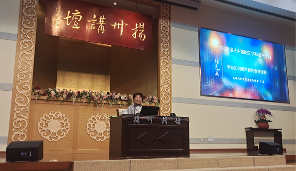 江苏省台办政府网站5月30日讯 27日,应扬州鉴真图书馆的邀请,上海戏剧学院表演系教授王苏做客扬州讲坛,以《文化自信从中国的文字和语言开始——绘声如画》为题,主讲声音的艺术,与来自扬州及周边地区的听众一起用声音和语言绘画。