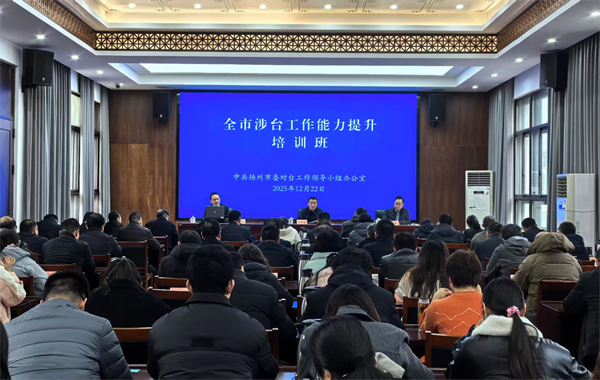 江苏省台办政府网站12月31日讯 为深入贯彻落实党的二十届四中全会精神,准确把握当前对台工作面临的新形势、新任务、新要求,推动全市对台工作高质量发展,近日,扬州市台办举办2025年涉台工作能力提升培训班。全市对台工作领导小组成员单位、各县(市、区)相关负责人,市台办机关干部等近百人参加。