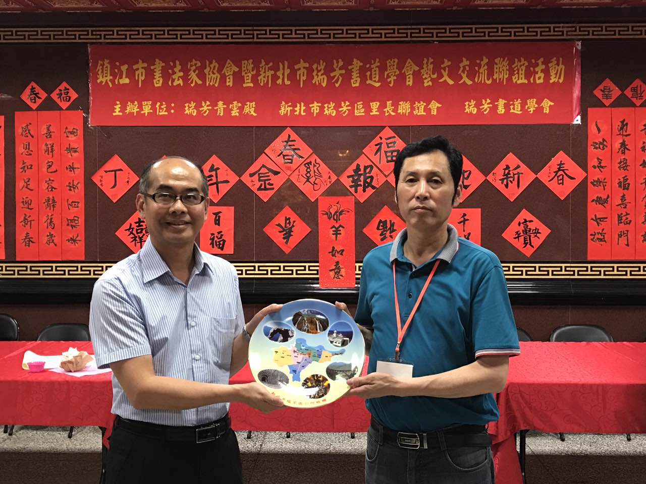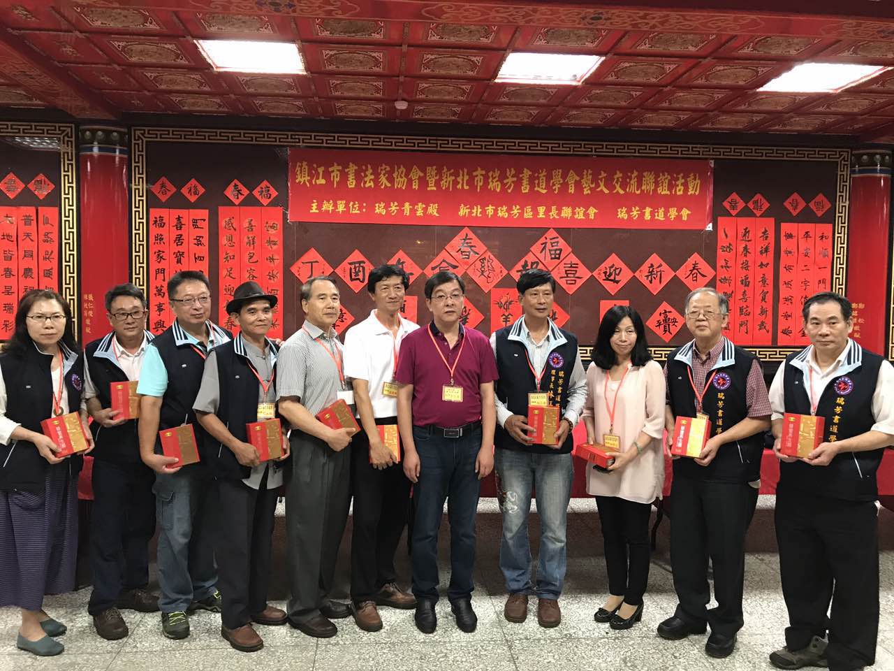 在台期间,蒋光年一行考察了新北市瑞芳社区、青云殿等,与瑞芳书道学会、彰化国学研究会进行书画交流。来自镇台两地的35位书画家现场挥毫泼墨,互相切磋书画技艺,6天共创作出300余副书画作品。艺术家们通过笔力遒劲的书法、精美的篆刻作品等,深刻阐释了中华文明源远流长的历史、博大精深的文化、造诣深厚的书艺底蕴。